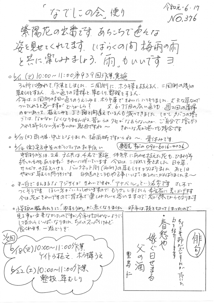 「なでしこの会」便りNo.376