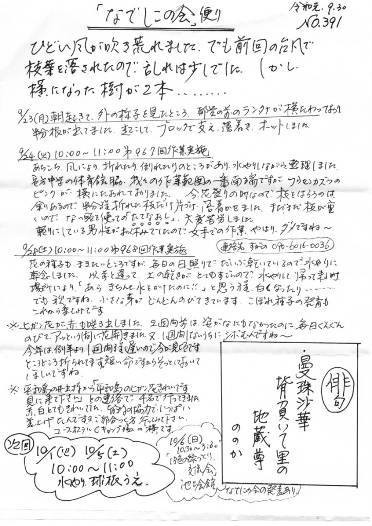 「なでしこの会」便りNo.391