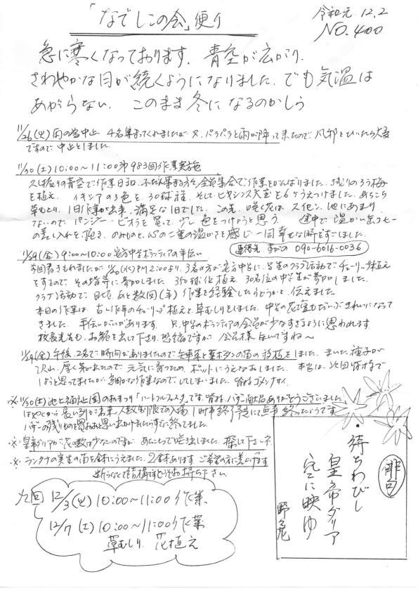 「なでしこの会」便りNo.400
