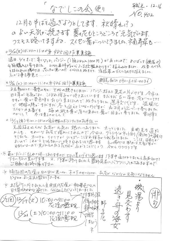 「なでしこの会」便りNo.402