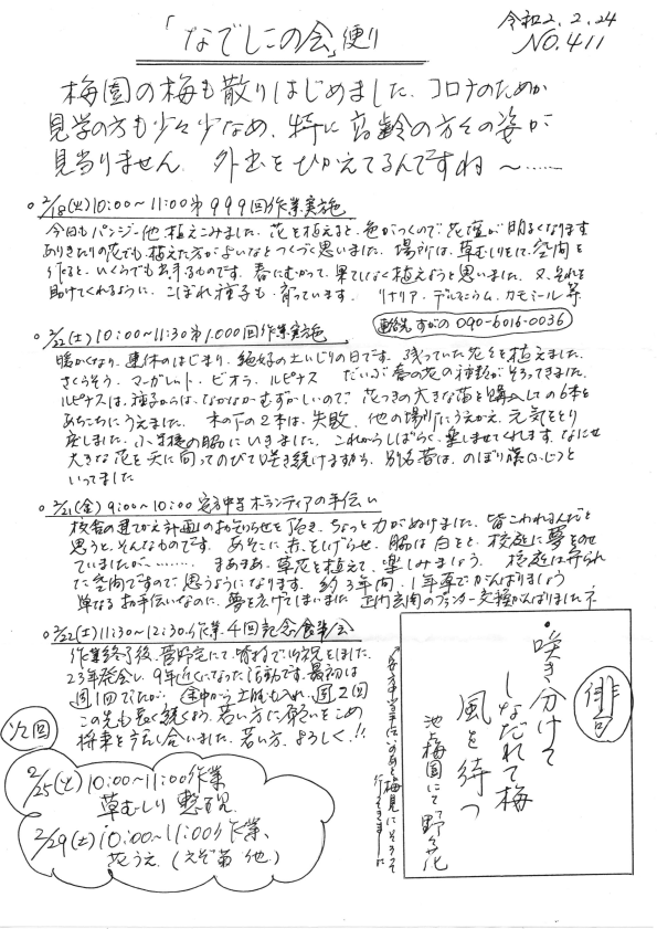 「なでしこの会」便りNo.411