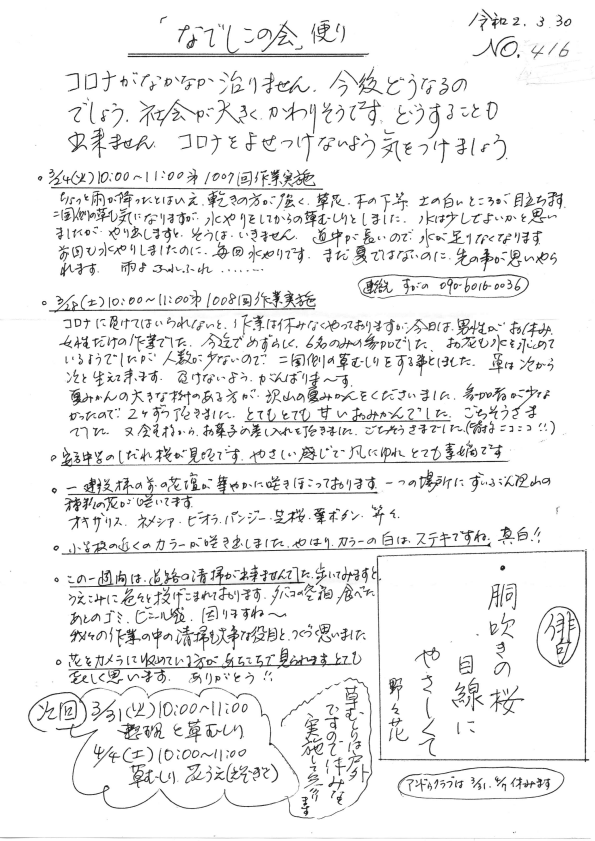 「なでしこの会」便りNo.416