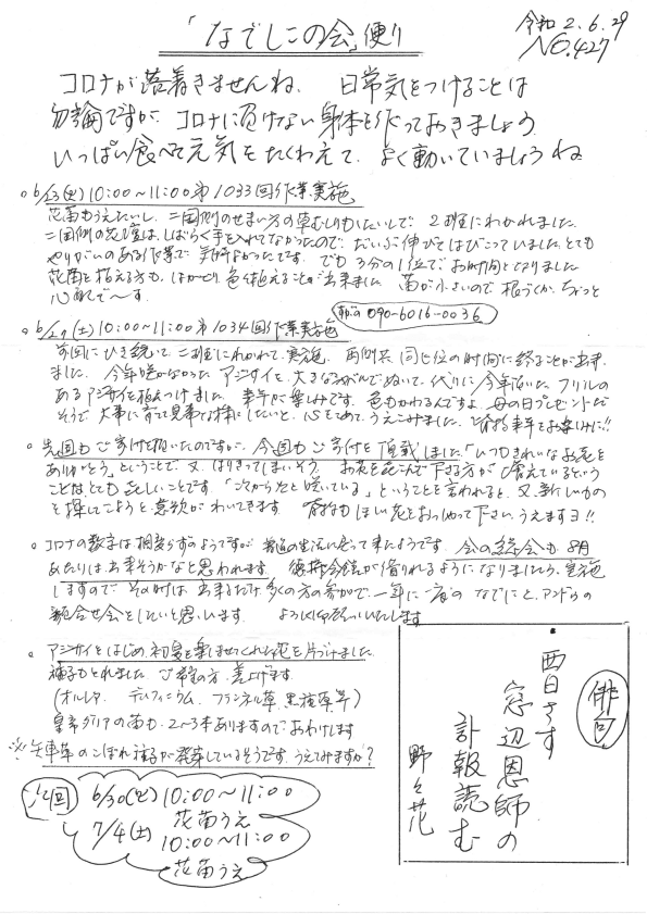 「なでしこの会」便りNo.427