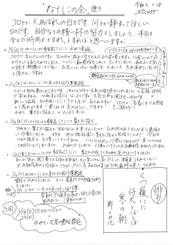 「なでしこの会」便りNo.455
