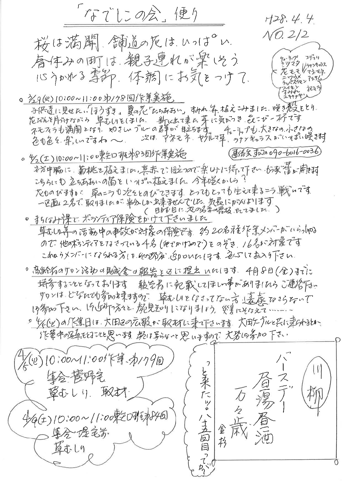 「なでしこの会」便りNo.212