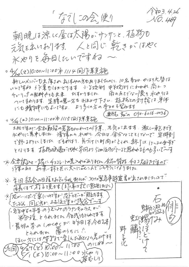 「なでしこの会」便りNo.469