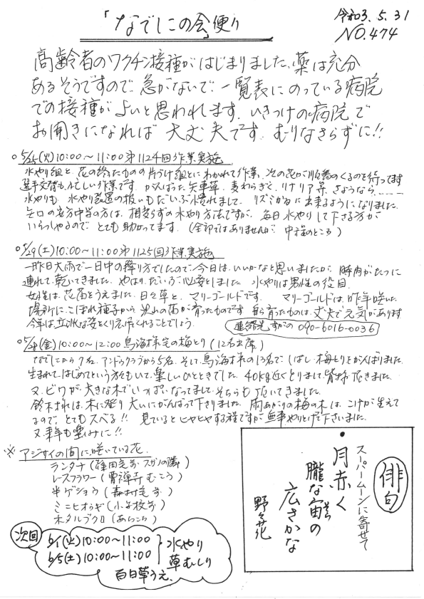 「なでしこの会」便りNo.474