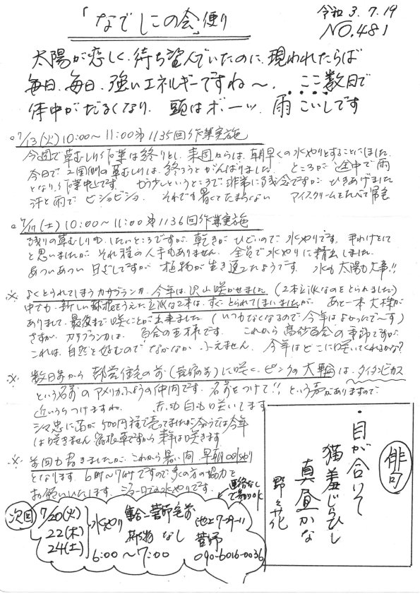 「なでしこの会」便りNo.481