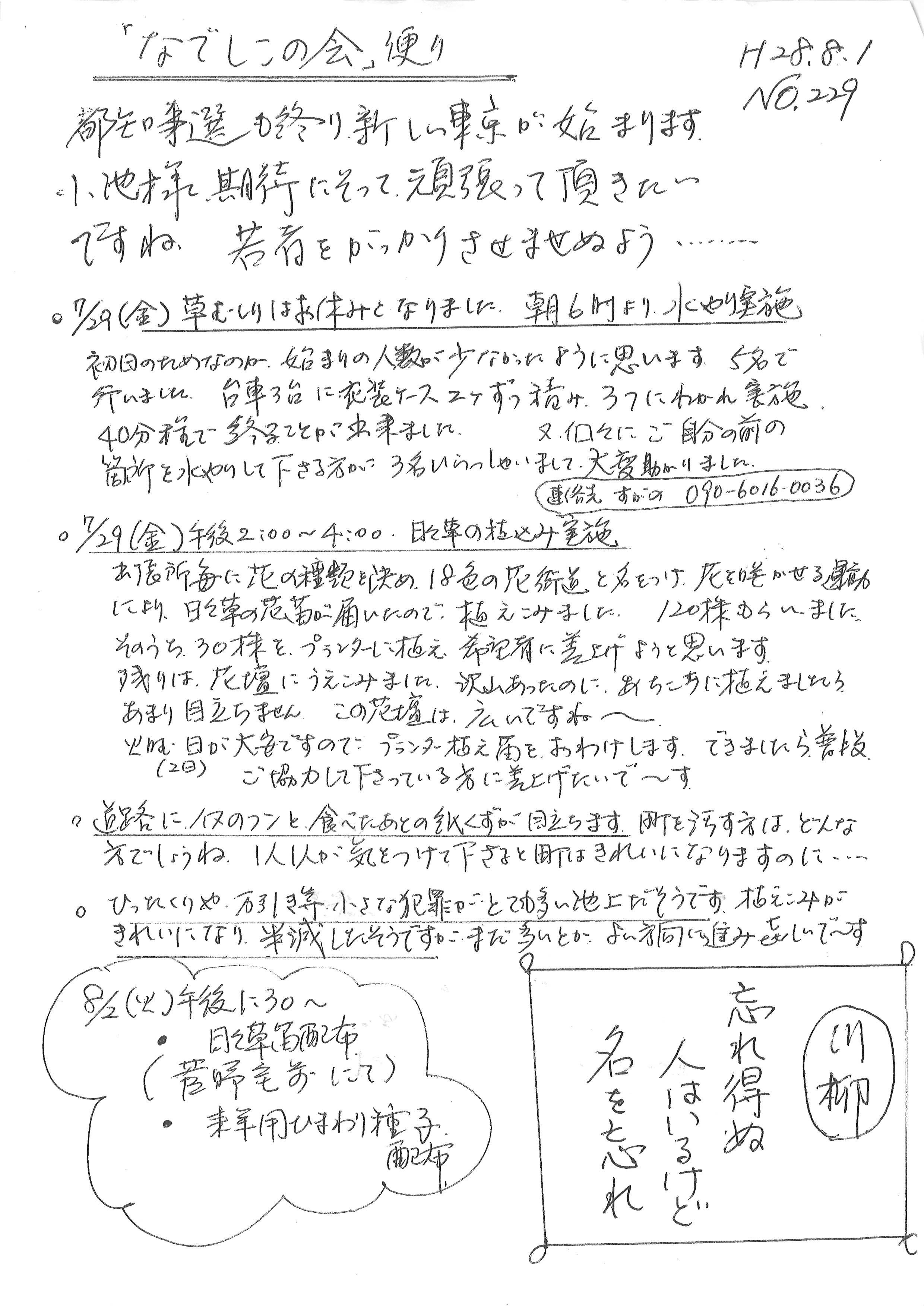 「なでしこの会」便りNo.229