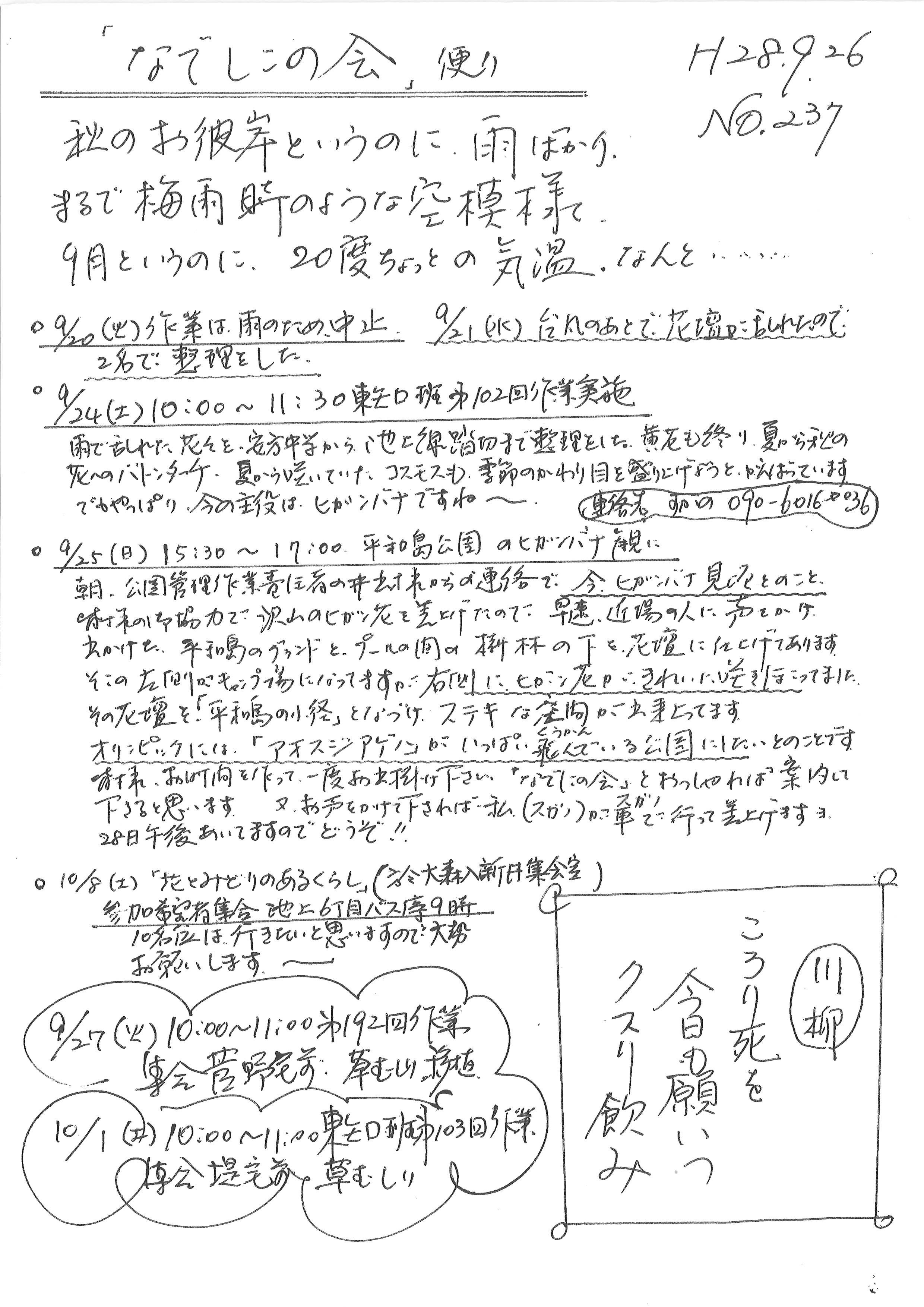 「なでしこの会」便りNo.237