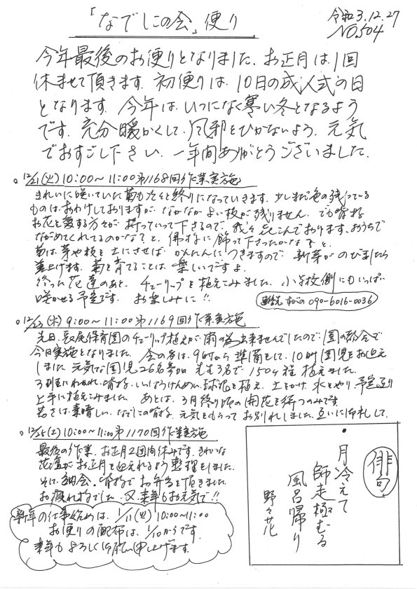 「なでしこの会」便りNo.504