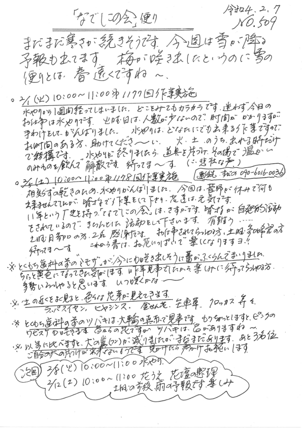 「なでしこの会」便りNo.509