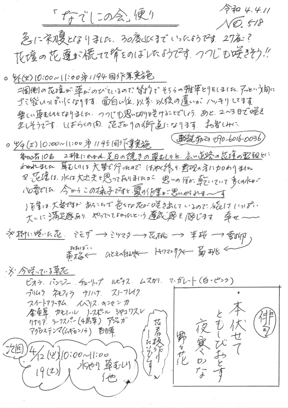「なでしこの会」便りNo.518