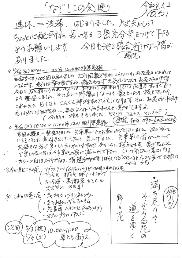 「なでしこの会」便りNo.521