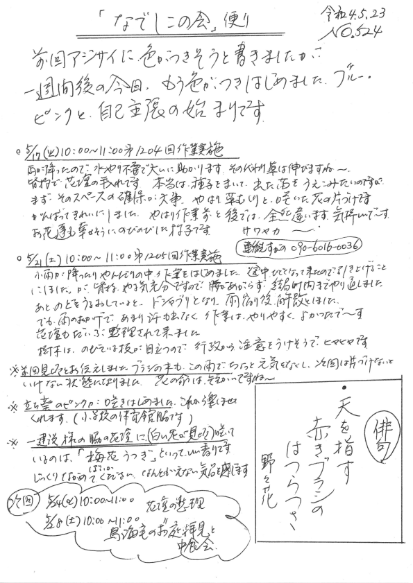 「なでしこの会」便りNo.524