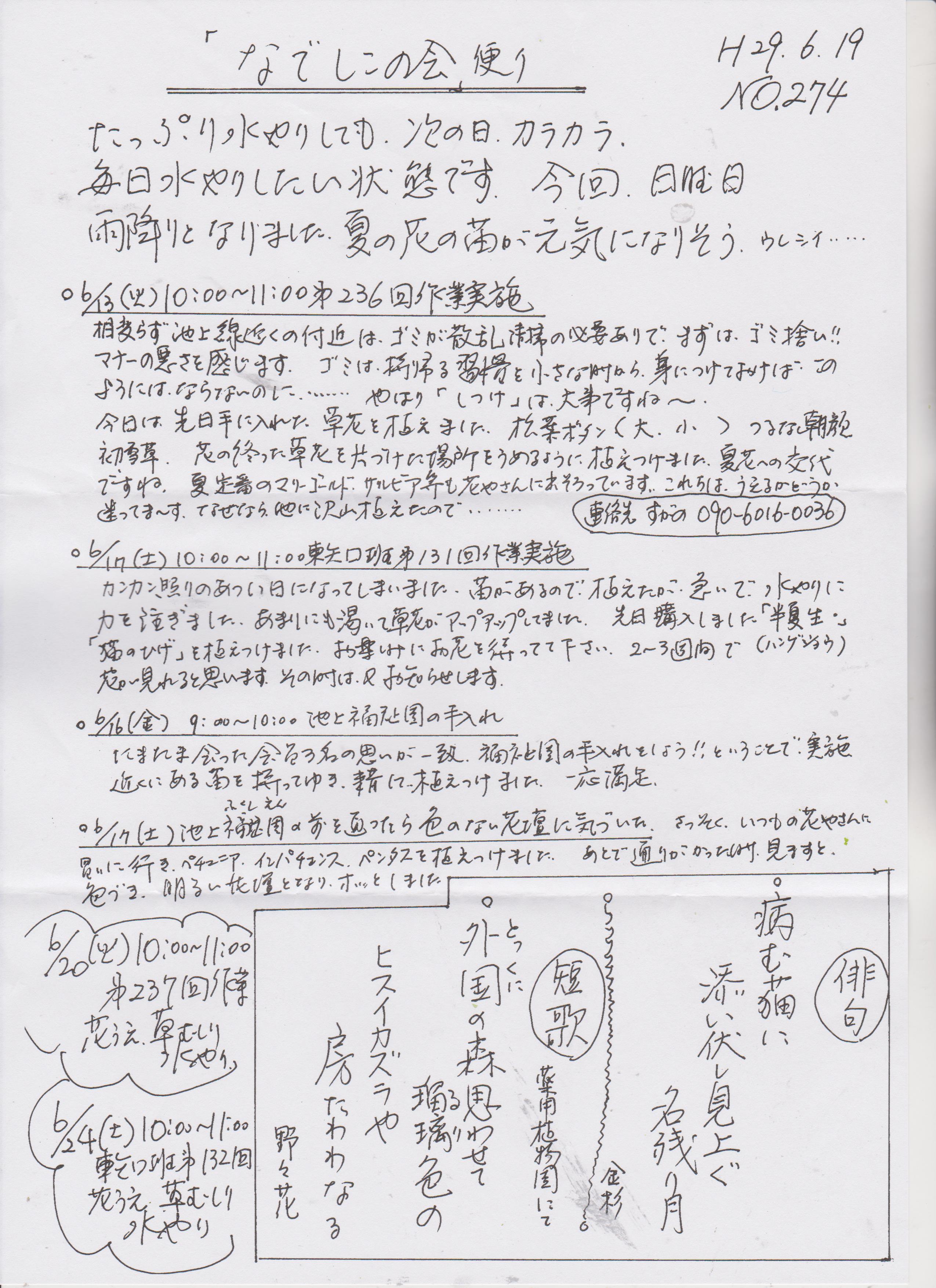 「なでしこの会」便りNo.274