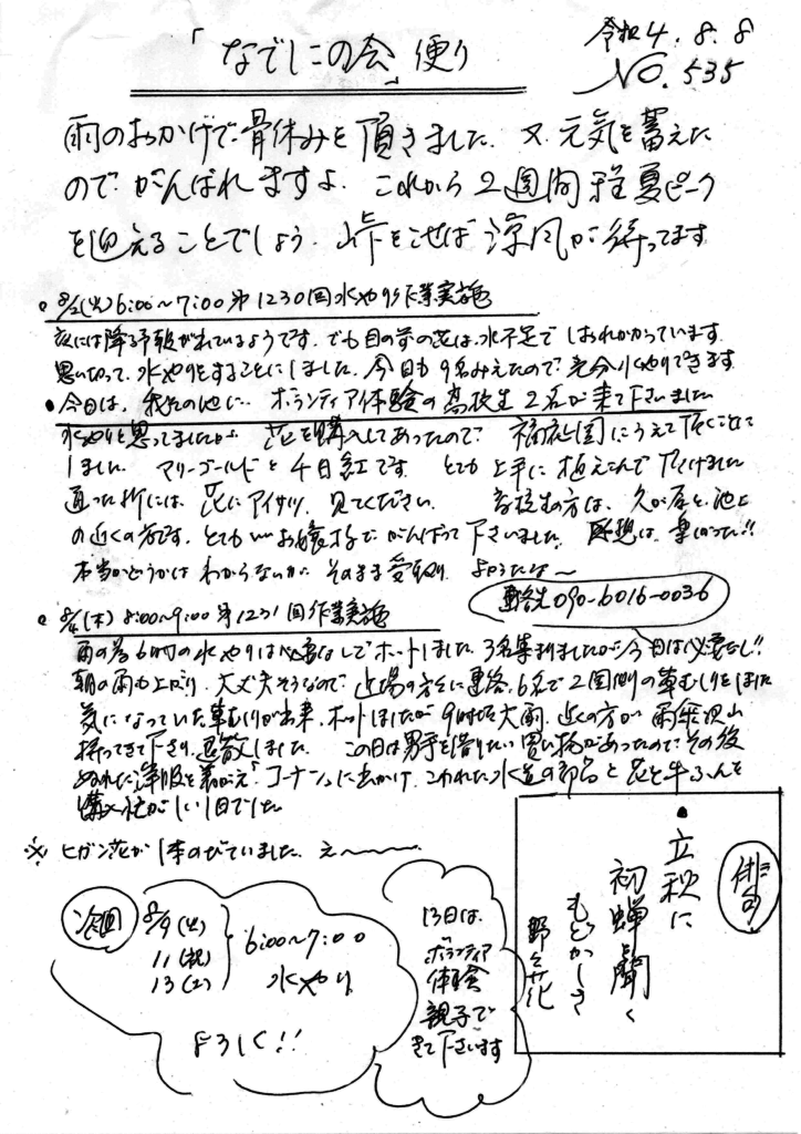 「なでしこの会」便りNo.535