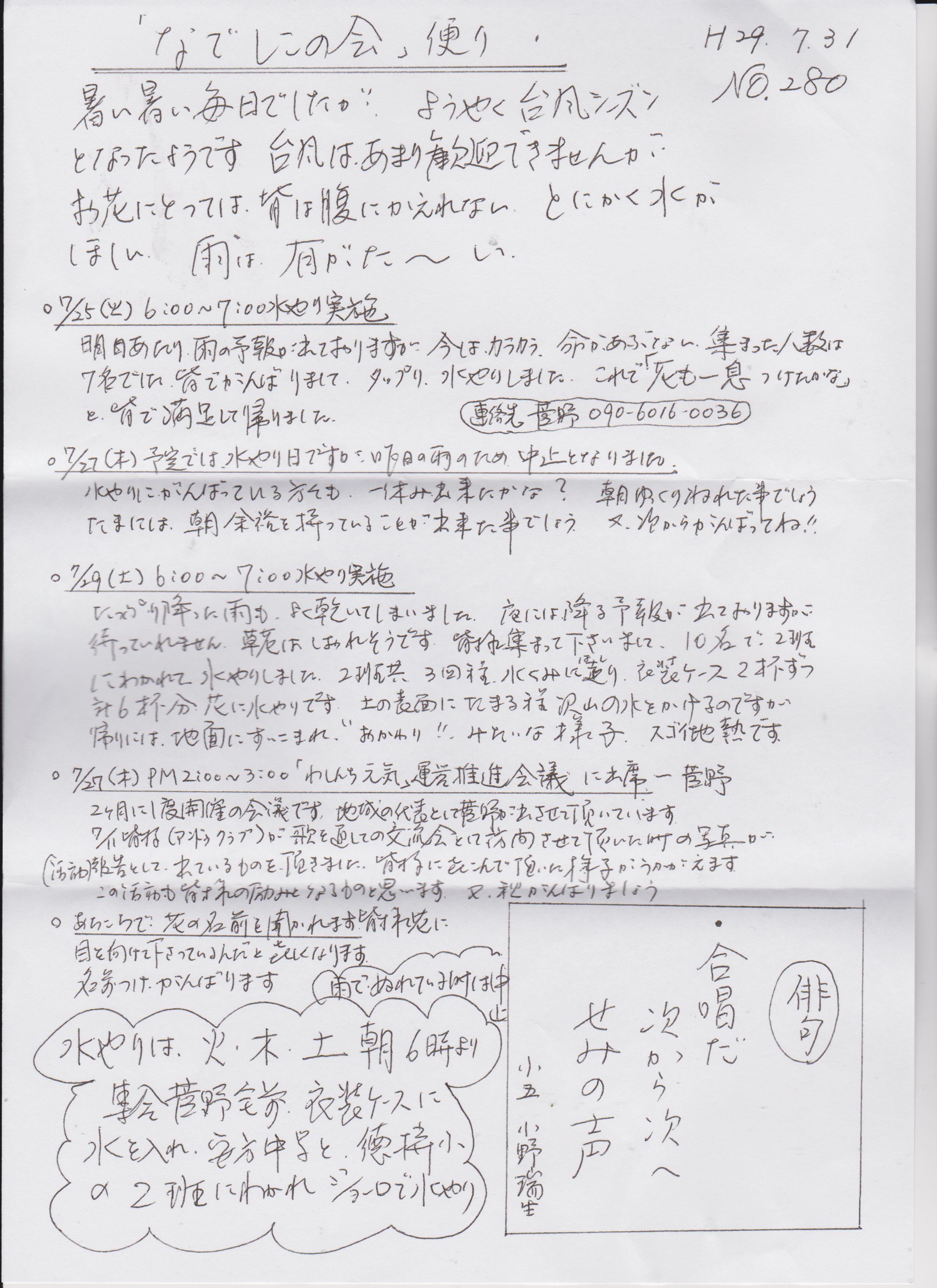 「なでしこの会」便りNo.280