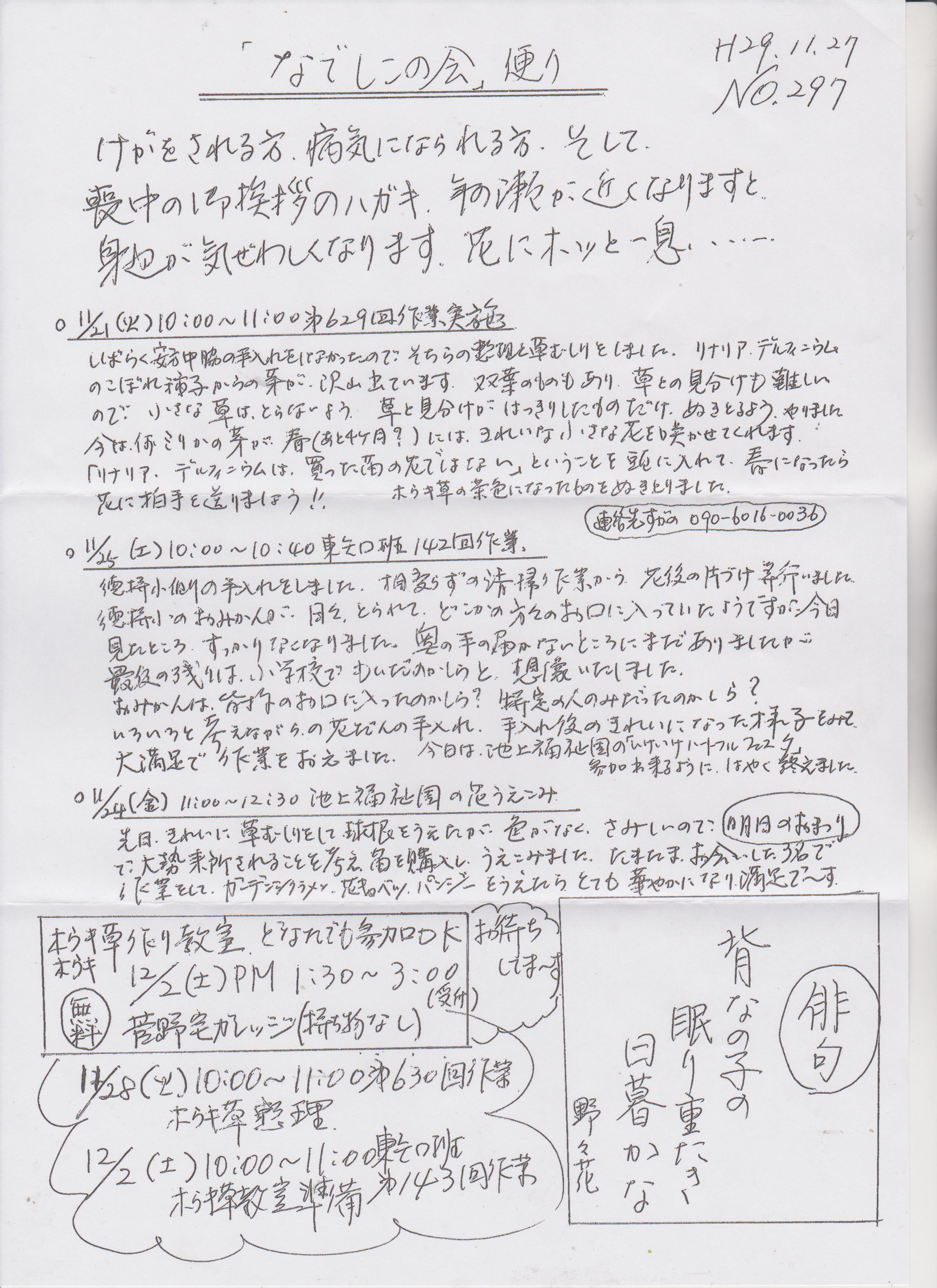 「なでしこの会」便りNo.297
