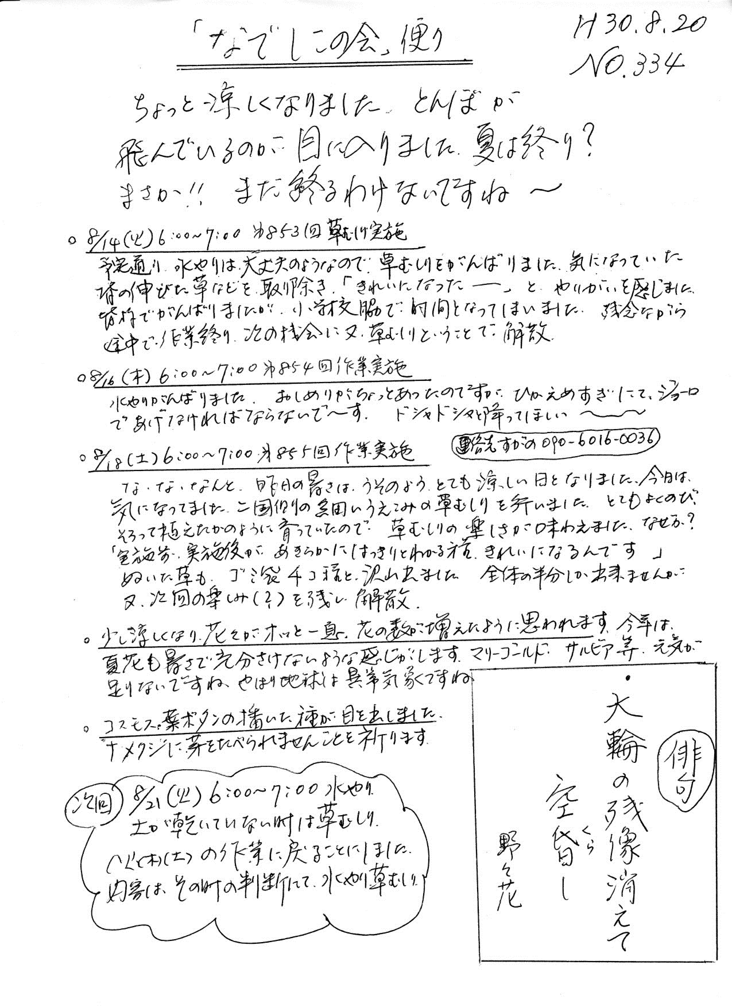 「なでしこの会」便りNo.334