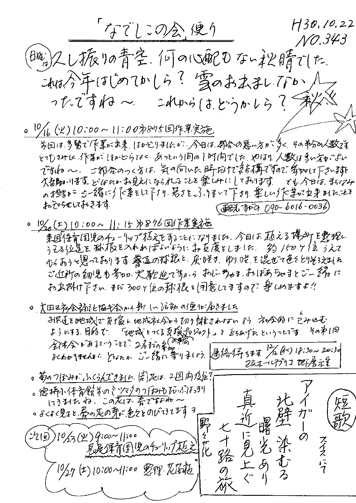 「なでしこの会」便りNo.343