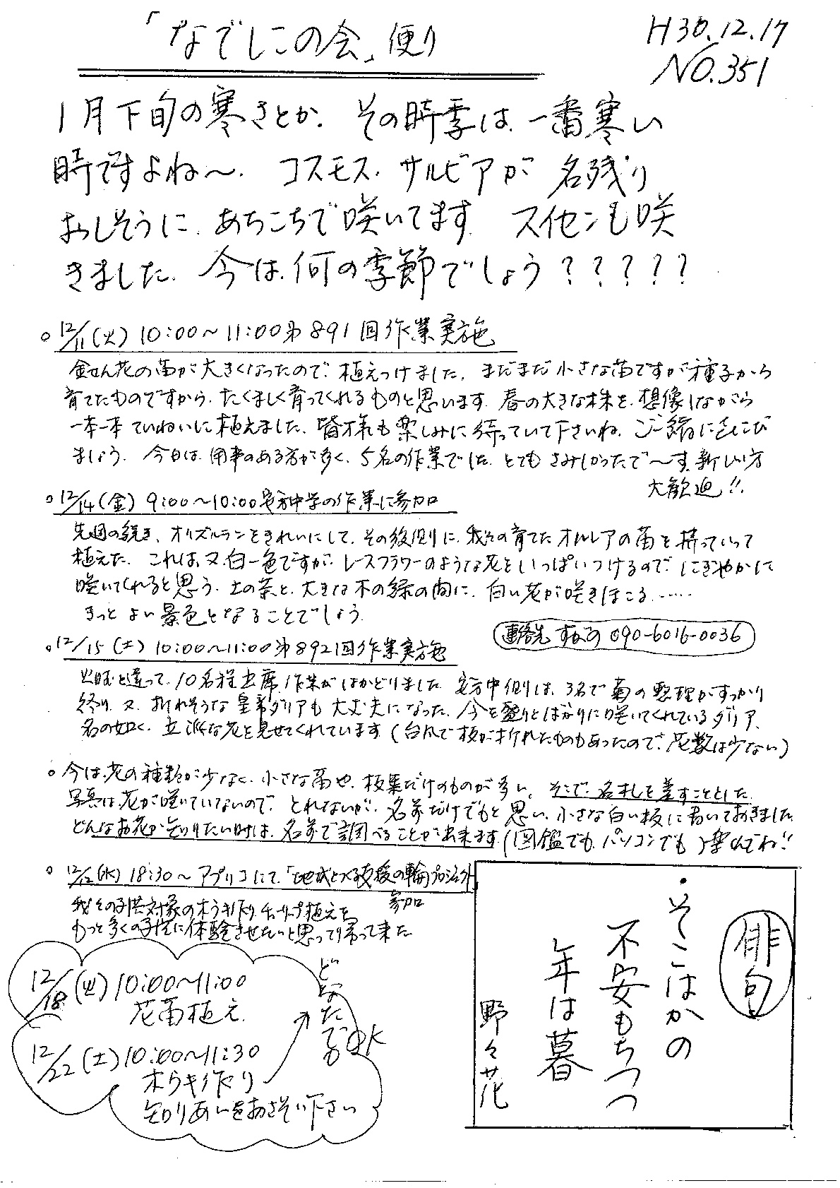 「なでしこの会」便りNo.351