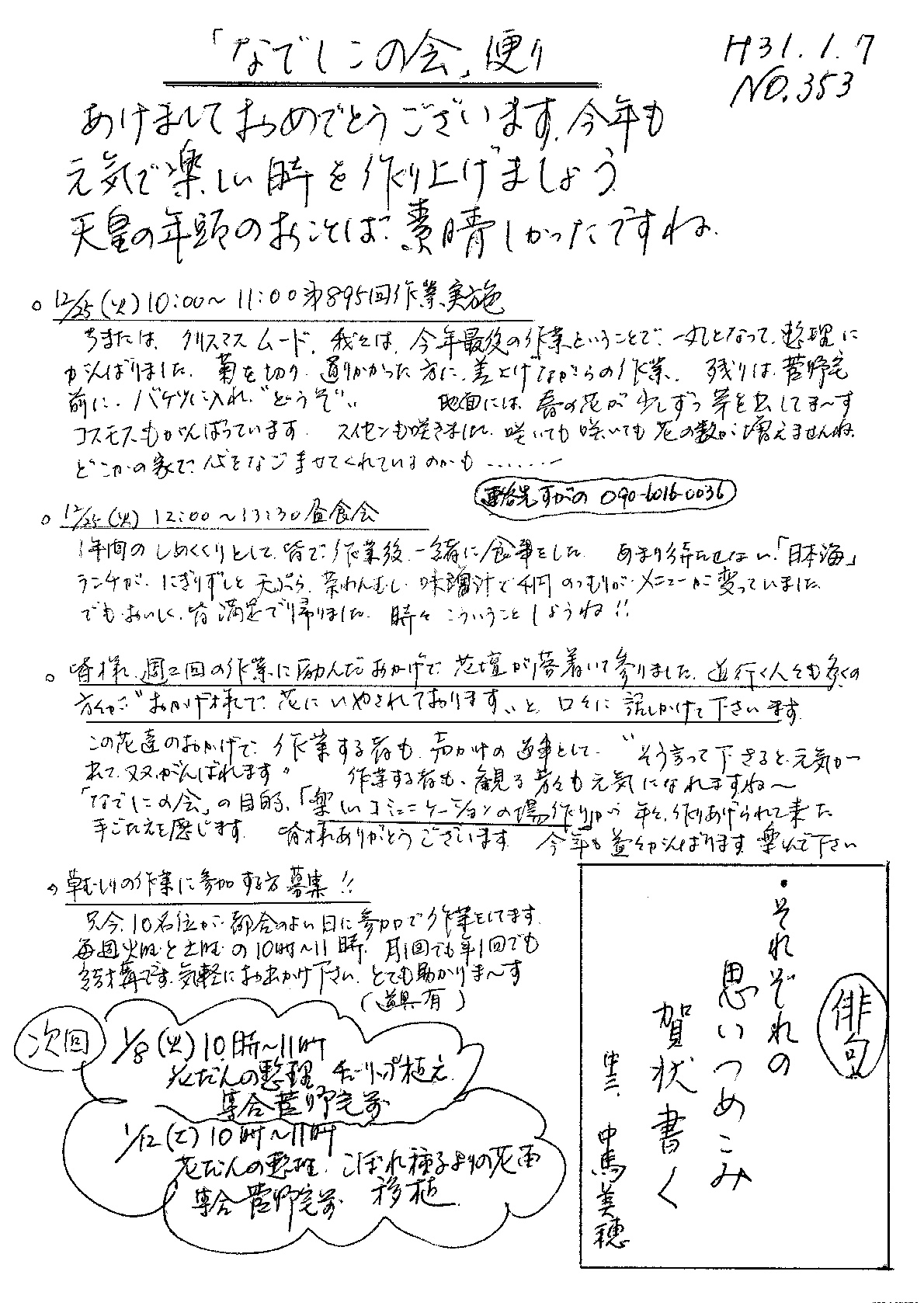 「なでしこの会」便りNo.353