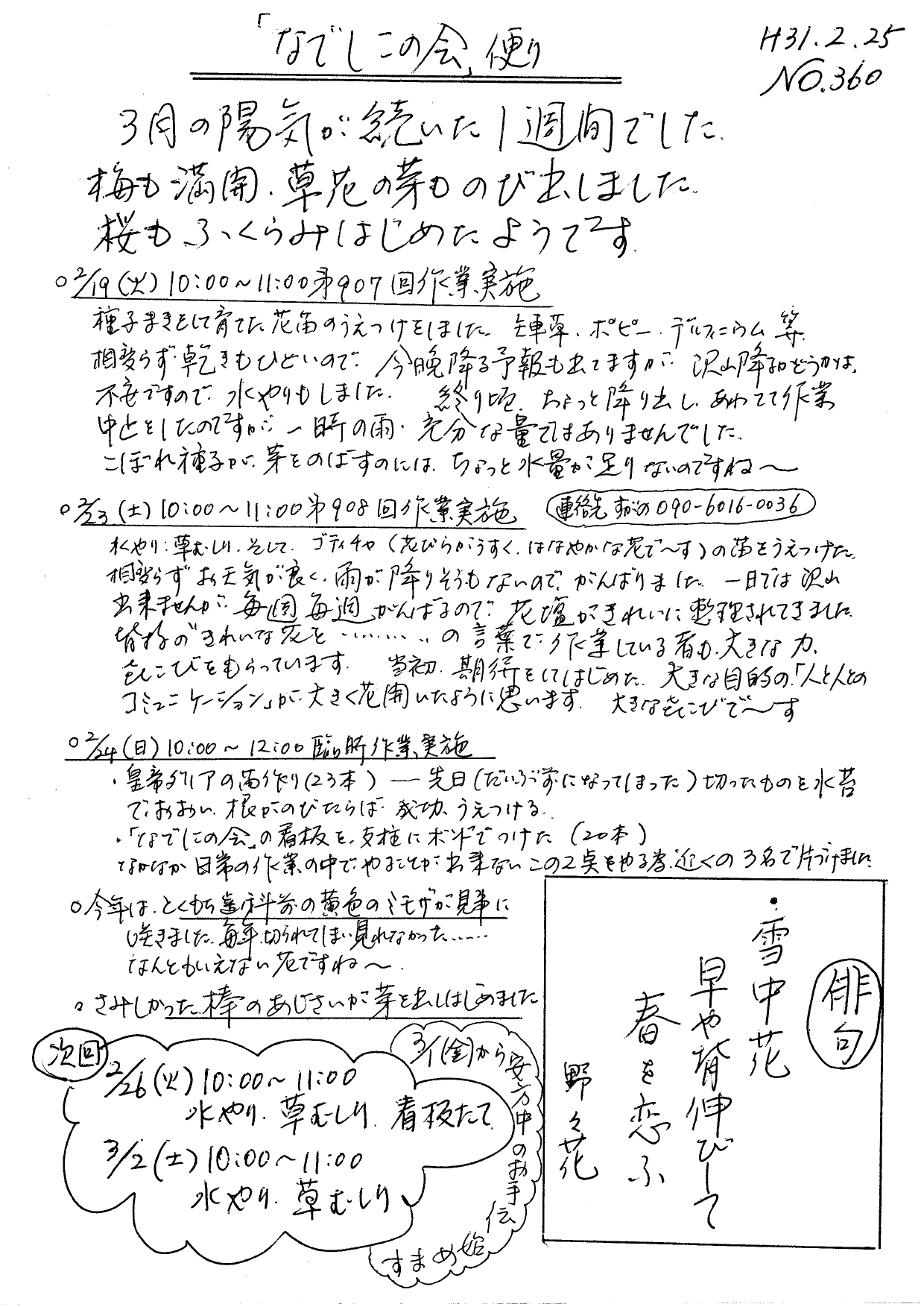 「なでしこの会」便りNo.360