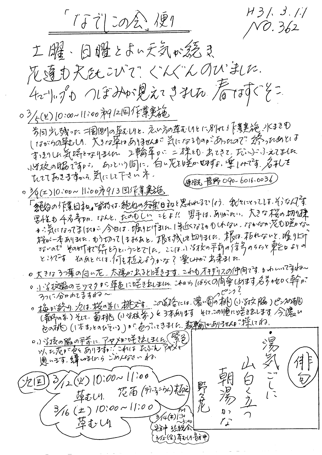 「なでしこの会」便りNo.362