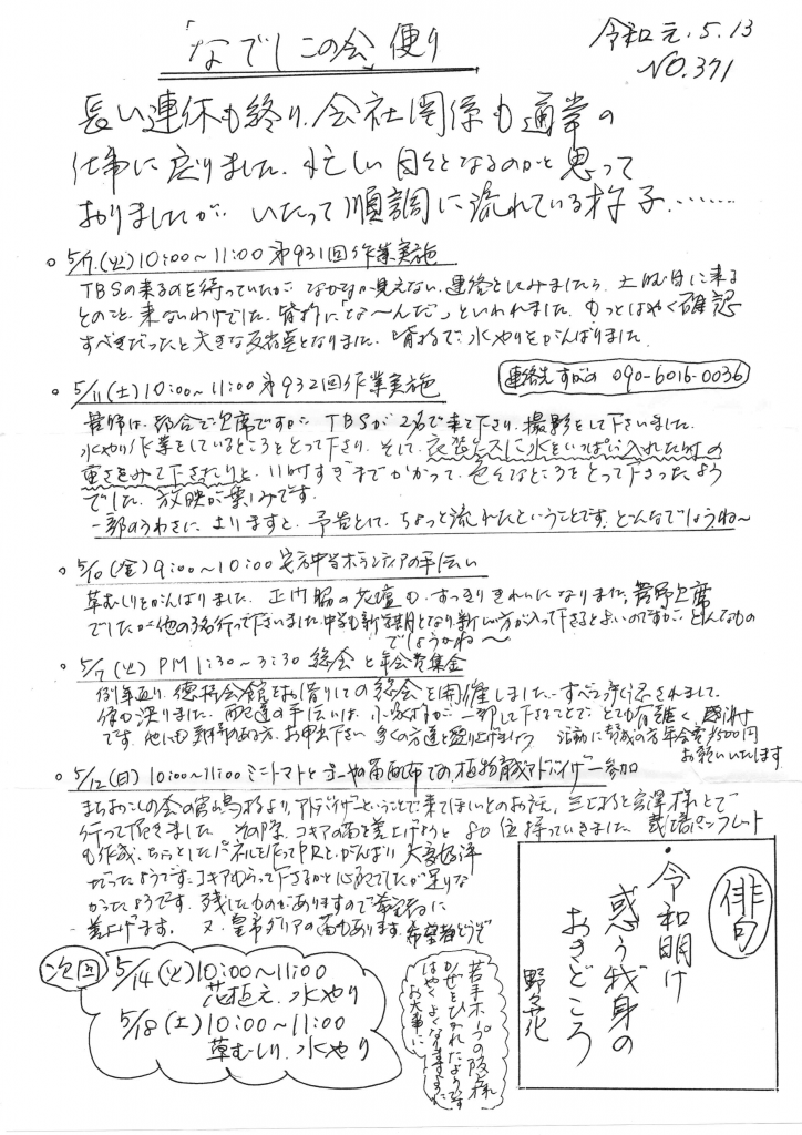 「なでしこの会」便りNo.371